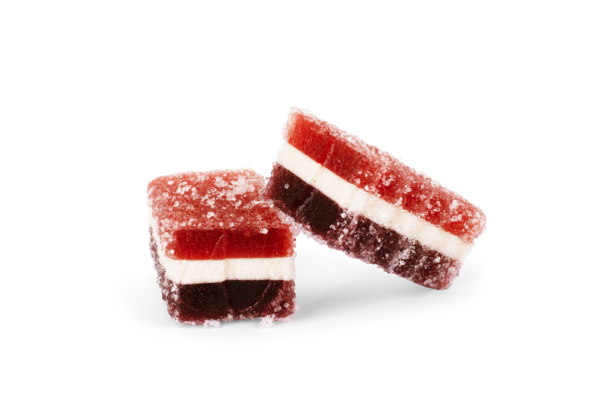 Сливочный мармелад: в сливки добавить 1 ч ложку агар-агара, дать набухнуть и нагреть при помешивании так же, как и для вишневого желе, добавить мед. Выложить на первый слой, когда он застынет.