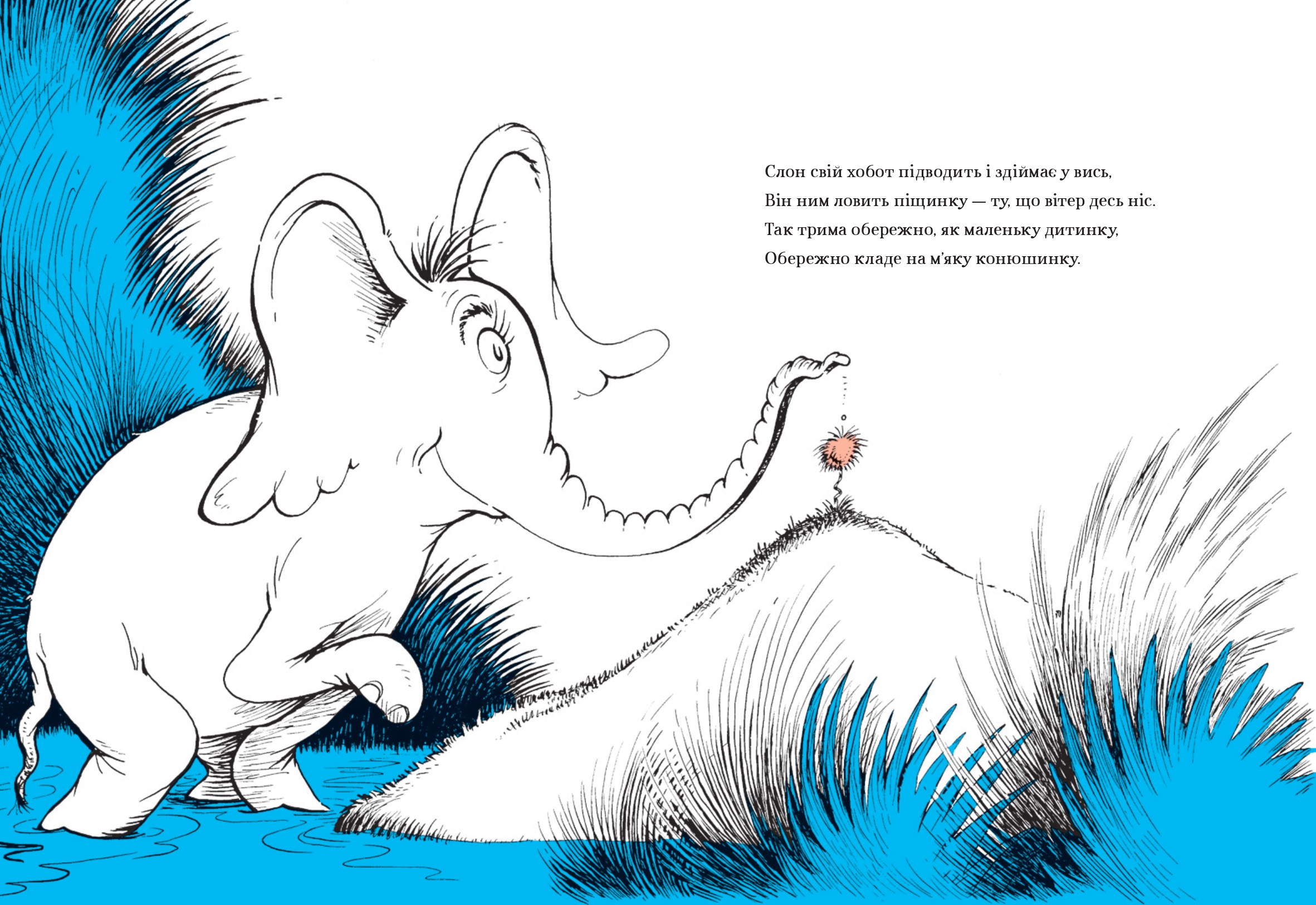 Книга «Хортон чує хтосів!» Доктора Сьюза (видавництво #книголав) якраз розповідає про здобуття голосу тими, кого не видно й не чути — маленькі створіння хтосі, які живуть на конюшинці та які настільки крихітні, що інші тварини їх просто не бачать. Але ж вони існують, живуть, мріють, радіють і сумують, так само, як і всі інші. Чому ж їх не помічають?