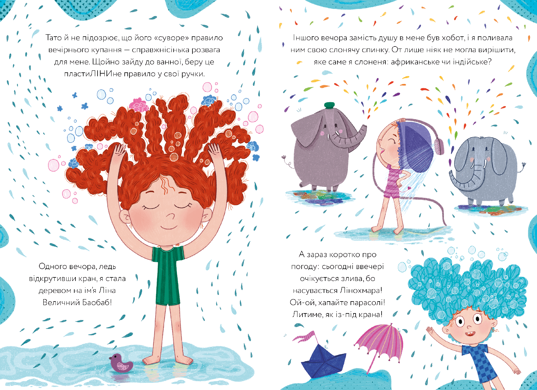 Ліна — весела й рудоволоса майже четвертокласниця на літніх канікулах. Вона любить бавитися з песиком Сопком, їсти морозиво та трохи лінуватися. Її мама іноді вередує, а тато обожнює правила. А ще в їхній сім’ї скоро з’явиться маленька сестричка…
