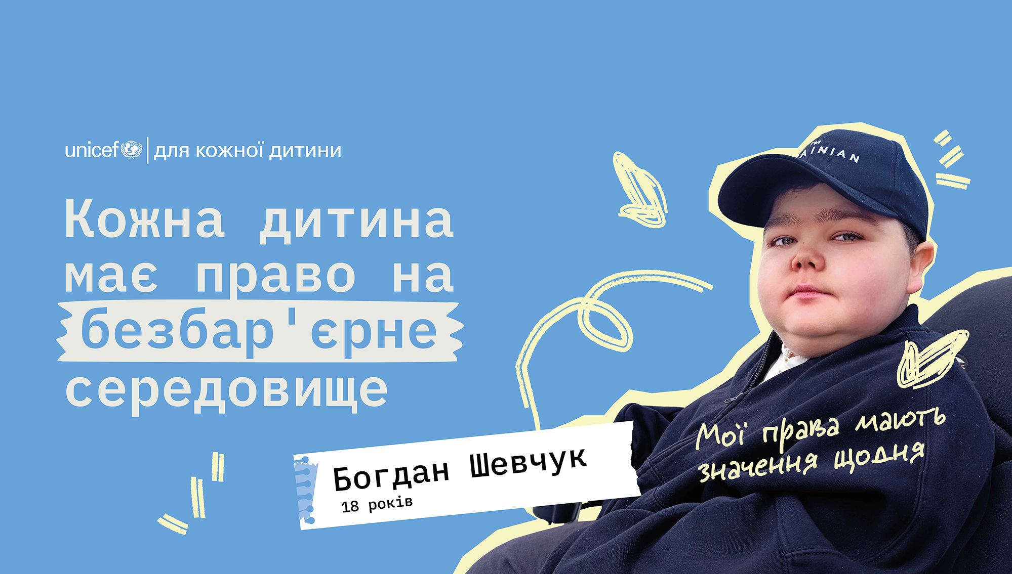 А блогер Богдан Шевчук говорить про важливість інклюзивності: «Кожна дитина має право на безбар'єрне середовище: на відсутність бар’єрів на вулицях наших міст і в наших головах… Дитина, яка пересувається на кріслі колісному, як ось я, має право займатися улюбленими хобі, вести тікток, відвідувати фестивалі… Гідне, повноцінне, безбарʼєрне життя — це право кожного та кожної, без виключення».