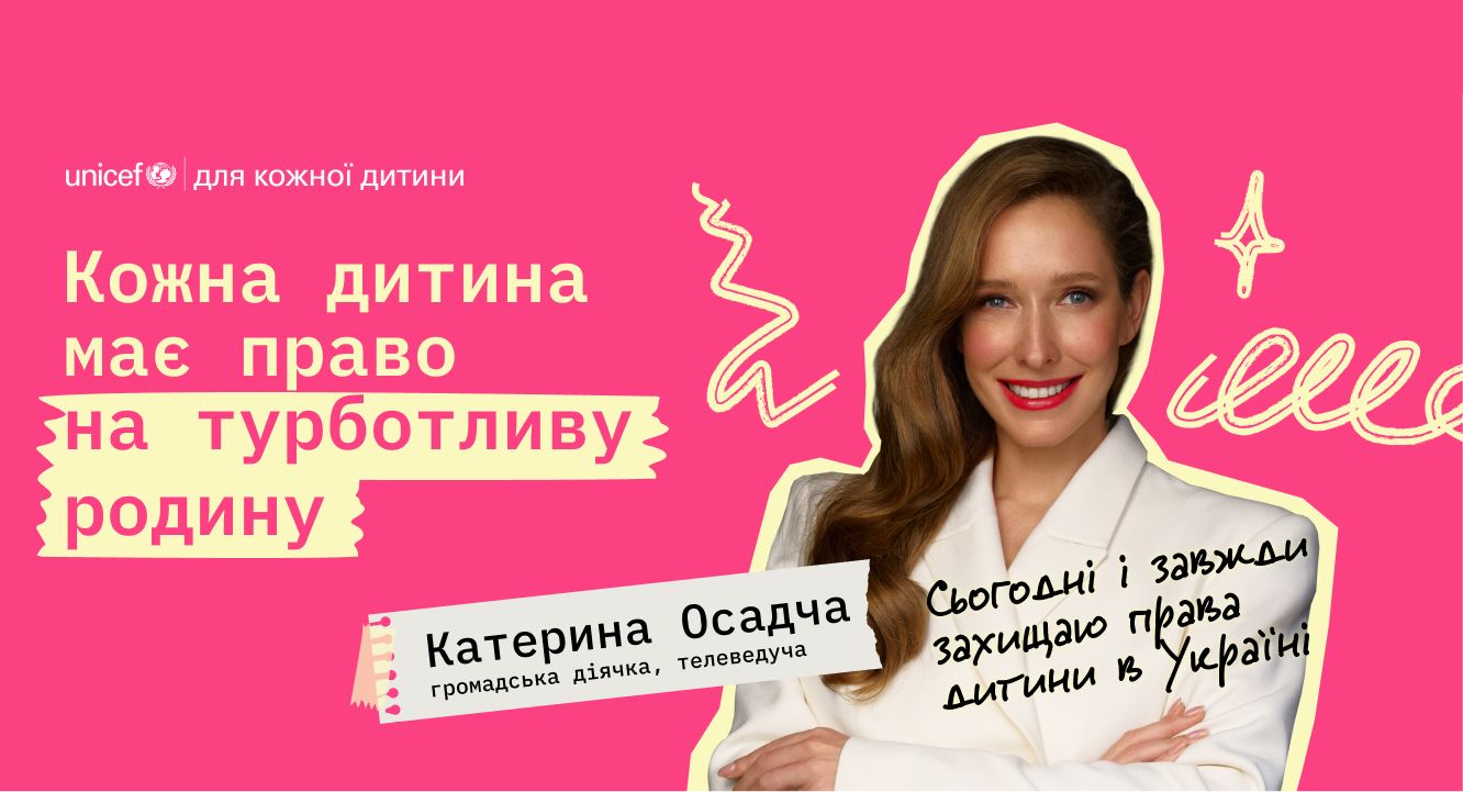 Телеведуча та громадська діячка Катерина Осадча наголошує: «Кожна дитина має право на родину. Я як мама трьох хлопців (Іллі, Данила і Івана) це достеменно знаю. Наскільки важливо, аби у дитини був свій дорослий поруч. Коли вони починають їздити на велосипеді, діляться всім сокровенним, розповідають про своїх друзів, про перше кохання, про те, наскільки їм складно чи радісно у житті. Якщо біологічні батьки з якихось причин не можуть піклуватися про власну дитину, існують різні сімейні форми виховання: усиновлення і не тільки».